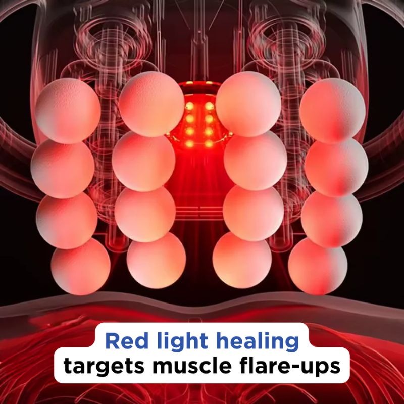 The precision attachments target trigger points in the neck and shoulders while red light therapy reduces inflammation deep in the tissue, eliminating headaches and restoring range of motion.