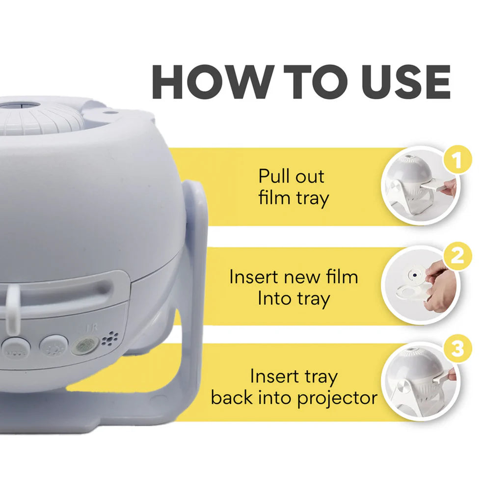 The projector can easily cover an entire bedroom ceiling and walls, turning the space into a magical wonderland.